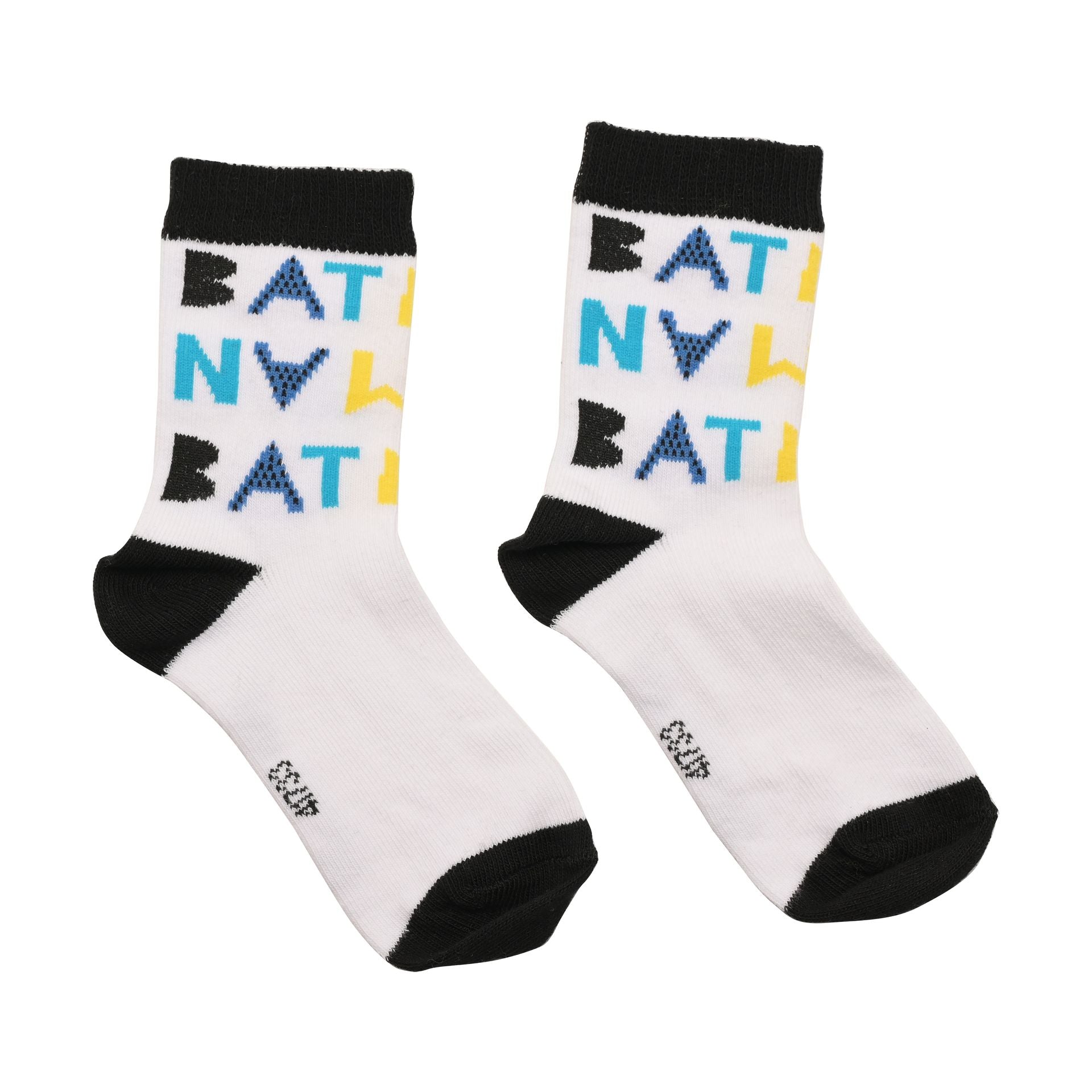 A pack of 3 Batman children’s socks from Little Heroes by WARNER BROS. These adorable socks will make Little Heroes feel like Superheroes. This trio of children’s cotton socks display individual Batman designs. They fit a 24–36 month UK shoe size. The socks are packaged in a lidded box